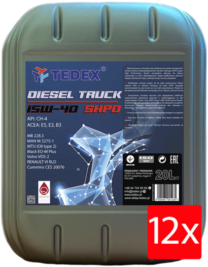 Wielosezonowy olej silnikowy SHPD (Super High Performance Diesel) wytworzony z najwyższej jakości mineralnych, hydrorafinowanych olejów bazowych i specjalnie dla tego oleju opracowanego pakietu dodatków uszlachetniających. Olej zalecany jest przez czołowych producentów samochodów do mocno wysilonych silników wysokoprężnych spełniających normy EURO 1, EURO 2, EURO 3.