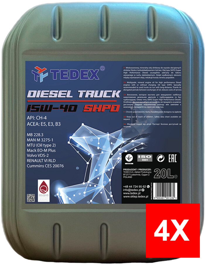 Wielosezonowy olej silnikowy SHPD (Super High Performance Diesel) wytworzony z najwyższej jakości mineralnych, hydrorafinowanych olejów bazowych i specjalnie dla tego oleju opracowanego pakietu dodatków uszlachetniających. Olej zalecany jest przez czołowych producentów samochodów do mocno wysilonych silników wysokoprężnych spełniających normy EURO 1, EURO 2, EURO 3.